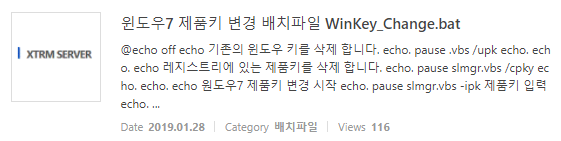 윈도우 제품키 변경 배치파일 WinKey Change Batch File