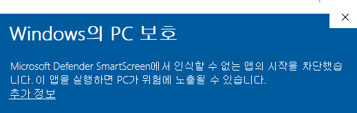 Windows의 PC보호 -> 추가정보 -> 실행