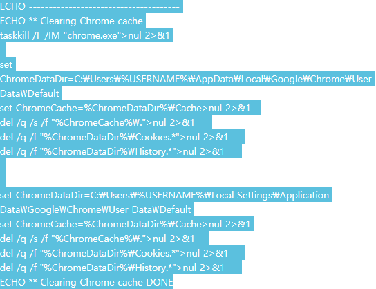 del /q /s /f "%ChromeCache%\.">nul 2>&1