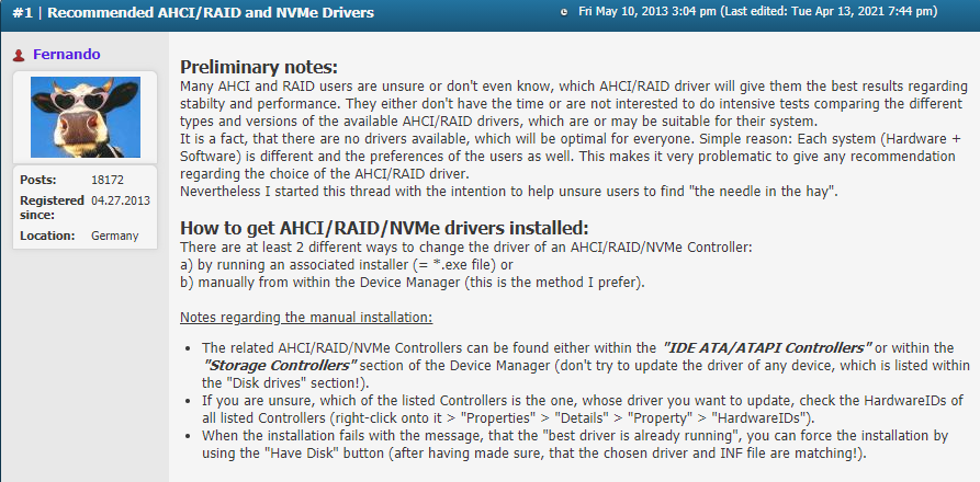Recommended AHCI/RAID and NVMe Drivers