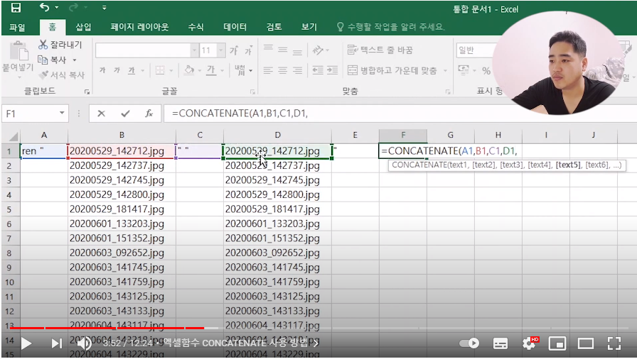 10:50 CONCATENATE 엑셀 함수로 텍스트 연결