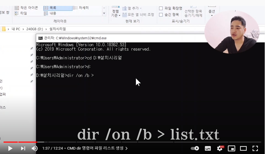 5:40 텍스트 추가 이름변경 CMD 커맨드 실행