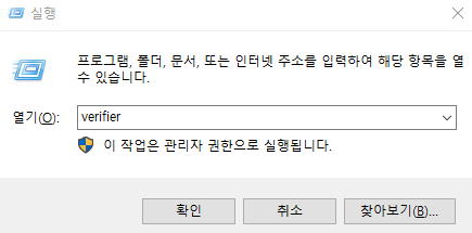 윈도우 드라이버 확인 프로그램 verifier