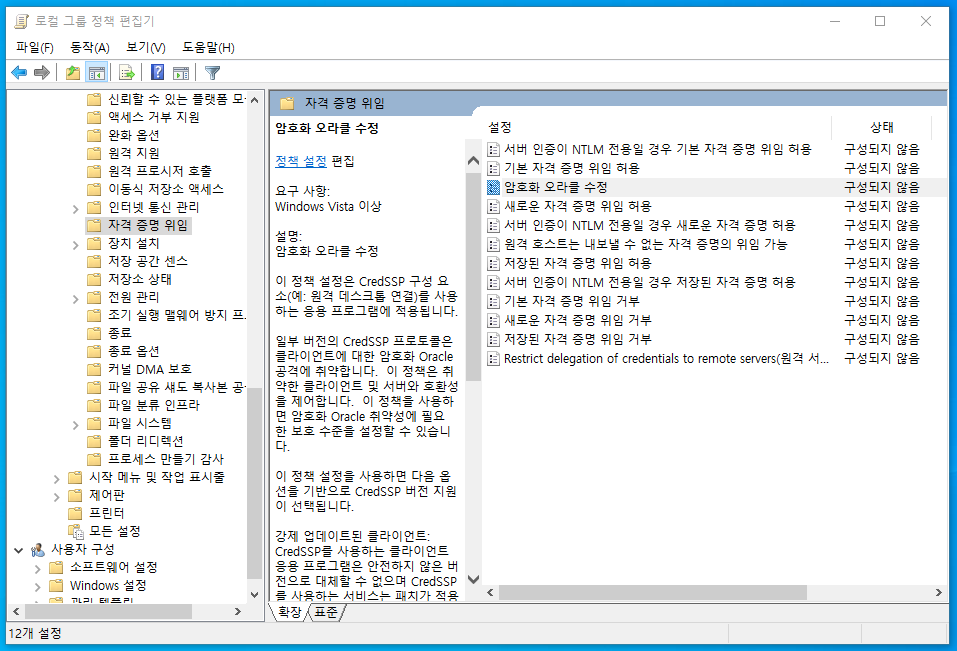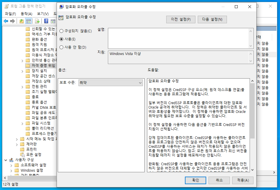 윈도우 원격 MSTSC 오류 암호화 오라클 수정