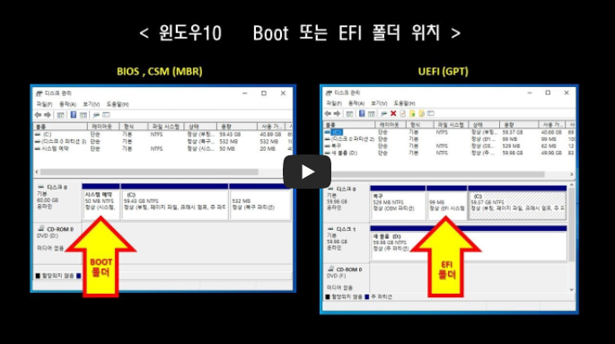 윈도우10 BOOT 또는 EFI 폴더 위치 비교