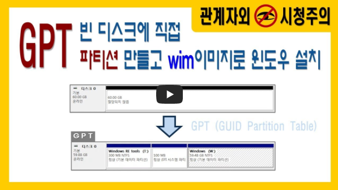 디스크 GPT 파티션 직접 만들기 wim 이미지 윈도우 설치 WinNTSetup 사용법