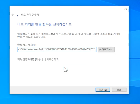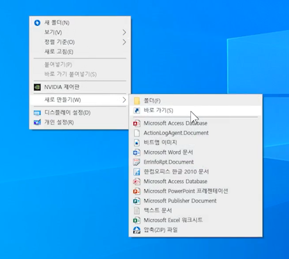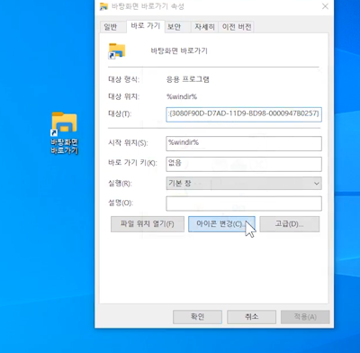 윈도우10 바탕화면 보기 바로가기 아이콘 만들기
