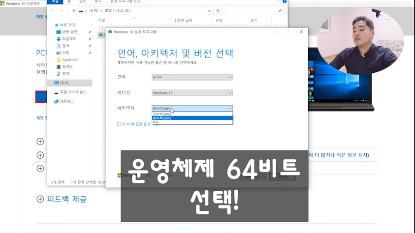 5. 운영체제 선택 : 일반적으로 윈도우 64비트 선택함.