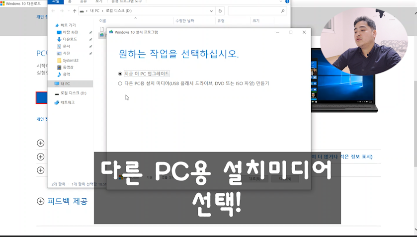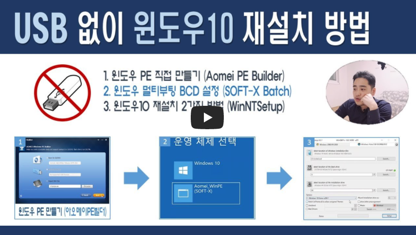 USB 없이 윈도우 PE에서 윈도우10 재설치 하기