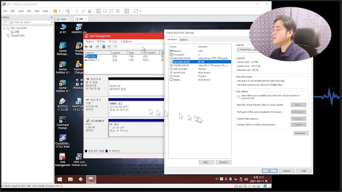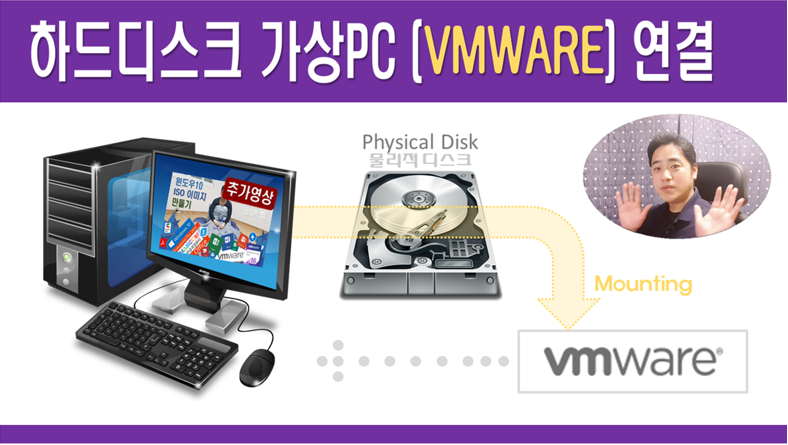 컴퓨터 물리적 디스크 VM웨어 가상PC 마운트 (연결) 하는 방법입니다.
