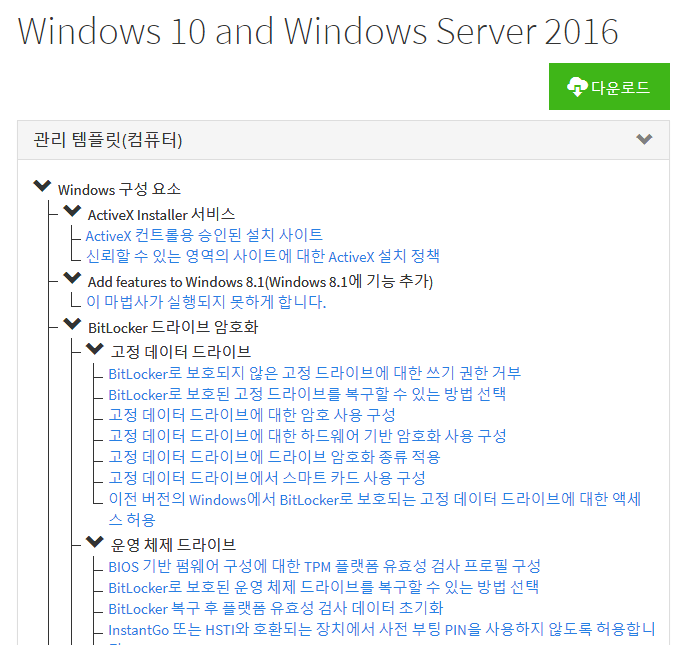 윈도우 그룹 정책 관리 템플릿 카탈로그 | Group Policy Administrative Templates Catalog