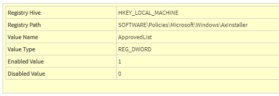 ● 템플릿 목록에서 필요한 레지스트리 값 찾기