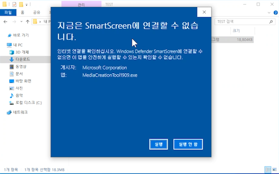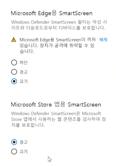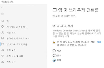스마트 스크린을 끄지 않으면 발생하는 경고메세지