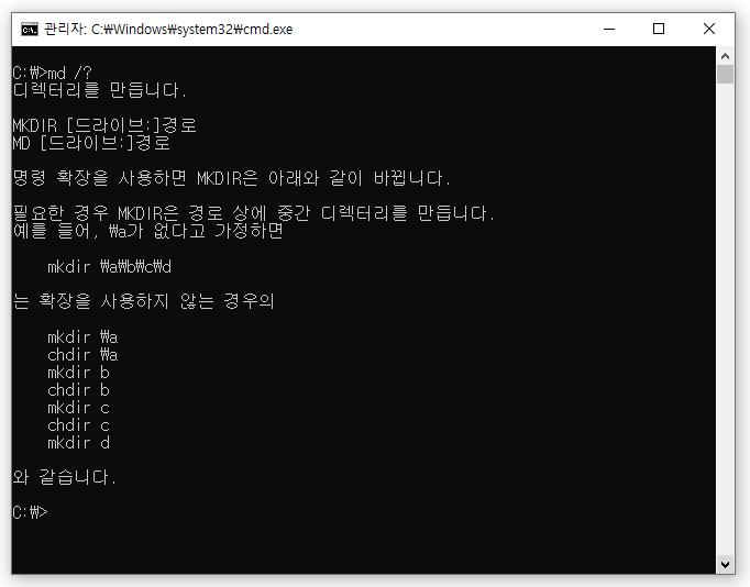 echo □ 폴더 생성 할 위치 D:\target 의 하위 폴더