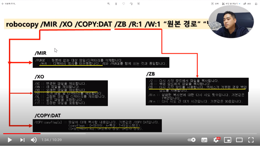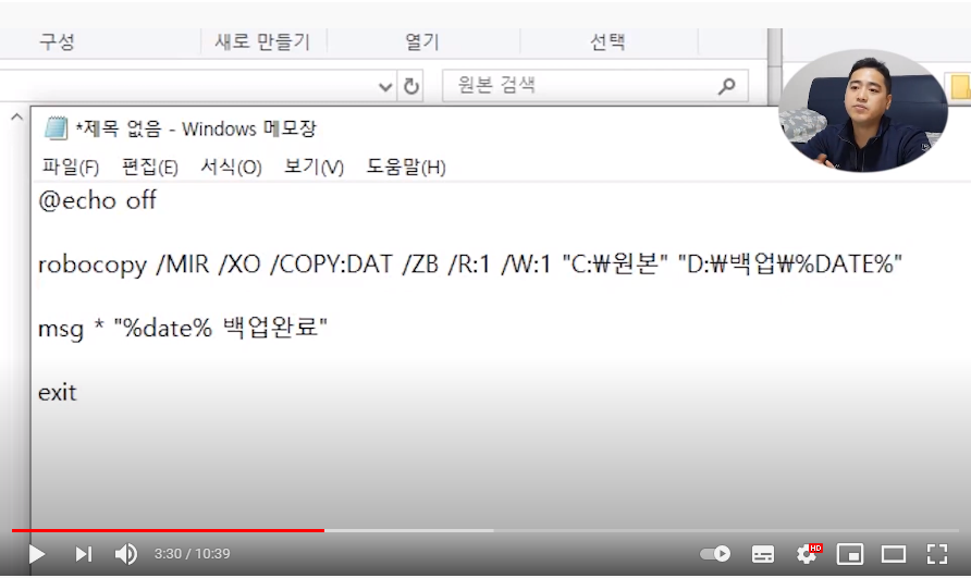 ROBOCOPY 명령어로 특정 폴더 파일 자동 백업 배치파일 만들기