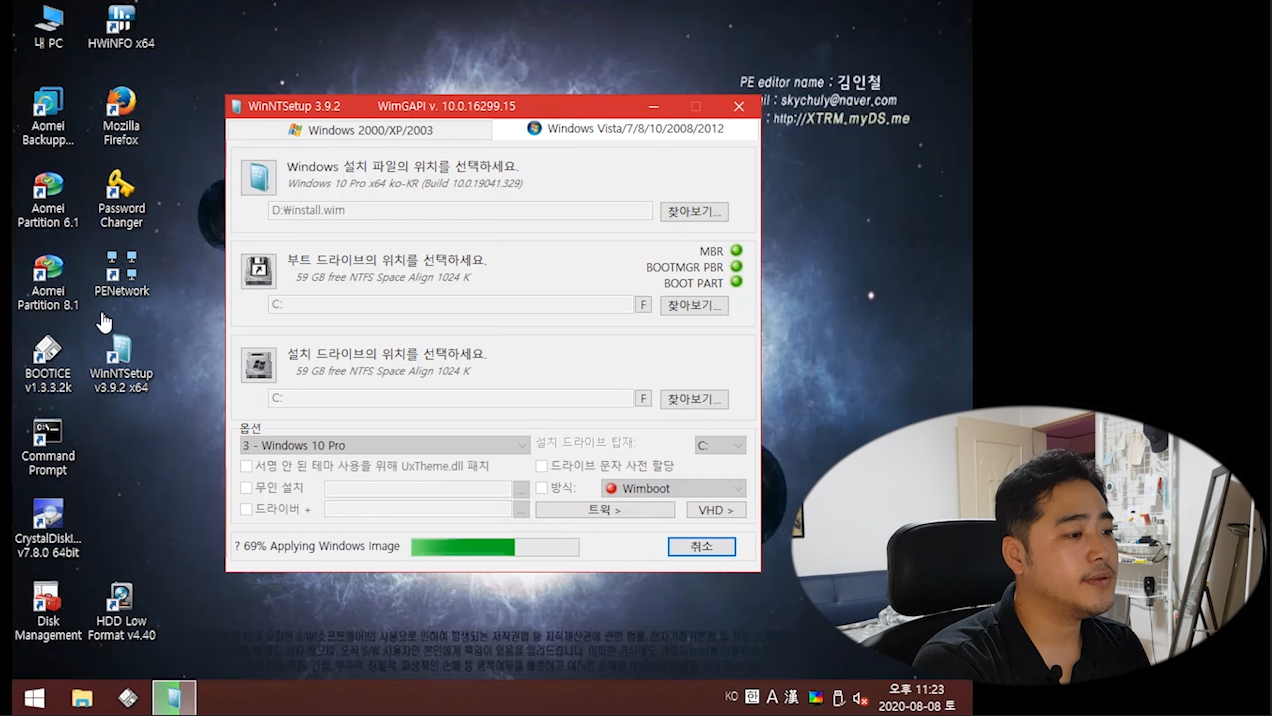 WinNTsetup 에서 윈도우 install.wim 파일 불러와서 윈도우 설치 작업