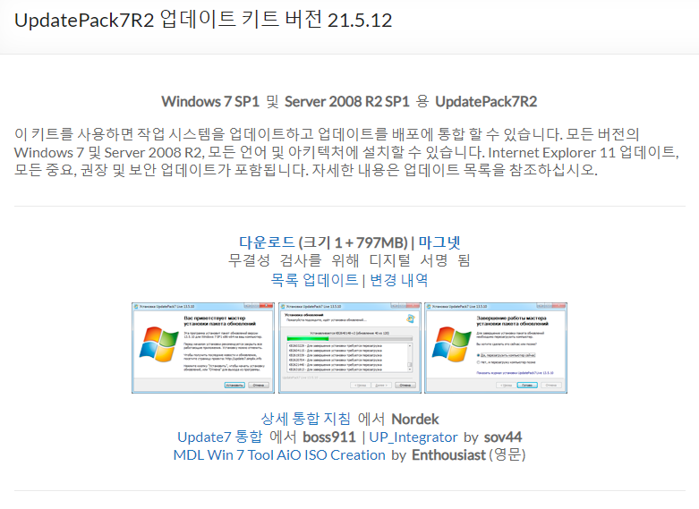 다운로드 : https://update7.simplix.info/UpdatePack7R2.exe