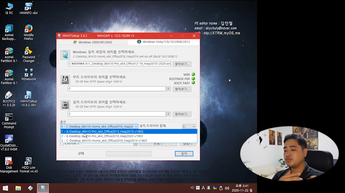 통합 된 Wim 이미지 파일 WinNTsetup 프로그램으로 가상PC에 윈도우 설치