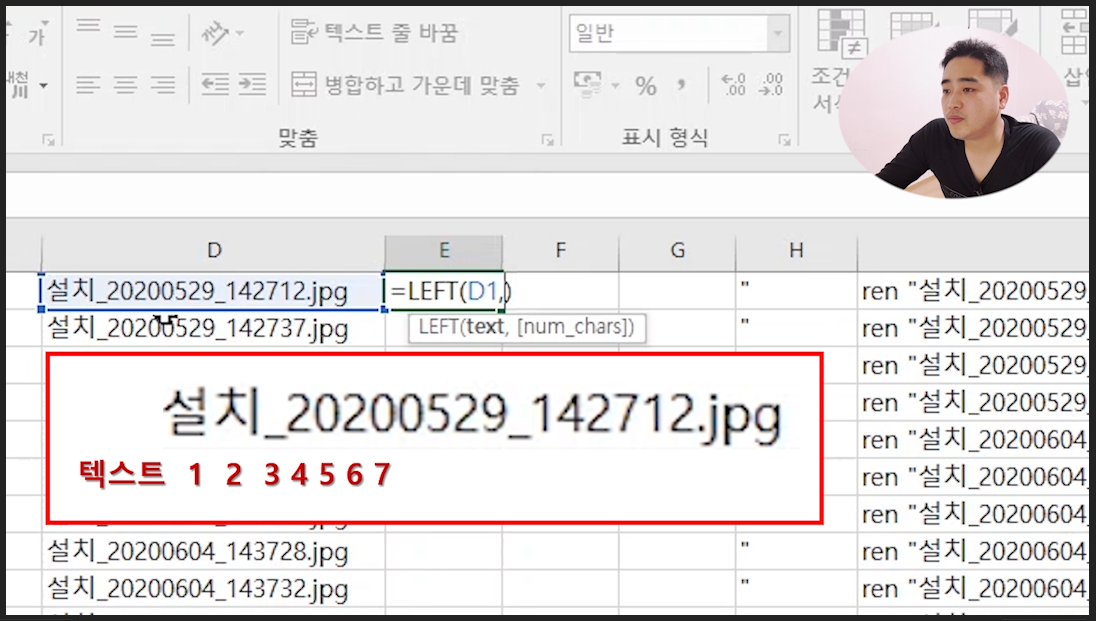 엑셀 함수 LEFT 으로 텍스트 추출