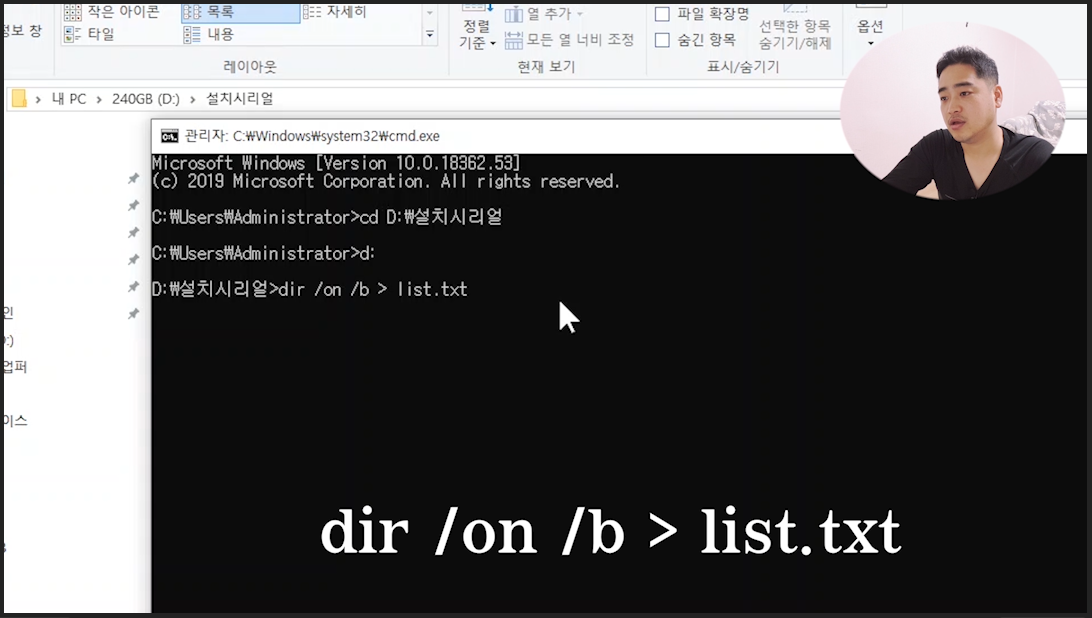 0:42 CMD dir 명령어 파일 리스트 생성