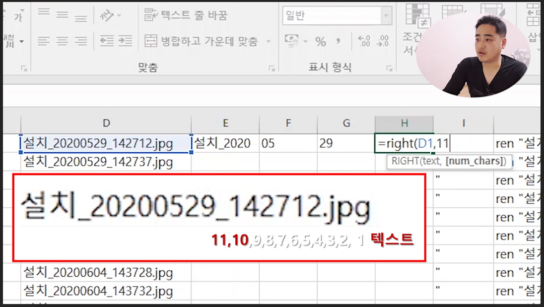 엑셀 함수 RIGHT 으로 텍스트 추출