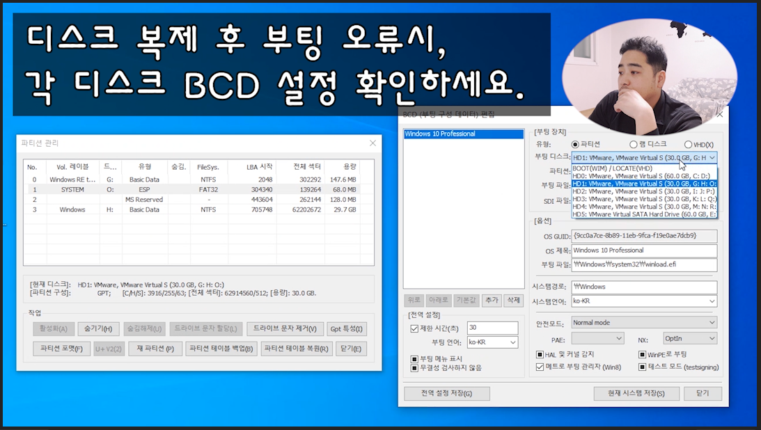 복사 한 디스크 부팅 오류시, 각 디스크의 BCD 파일 수정