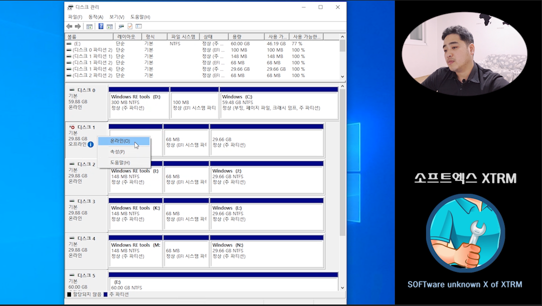 디스크 복사 후 오프라인 된 디스크는 온라인으로