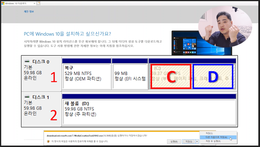 윈도우10 재설치 특별한 방법 - USB 없이 윈도우 PE 부팅 윈도우 설치 방법