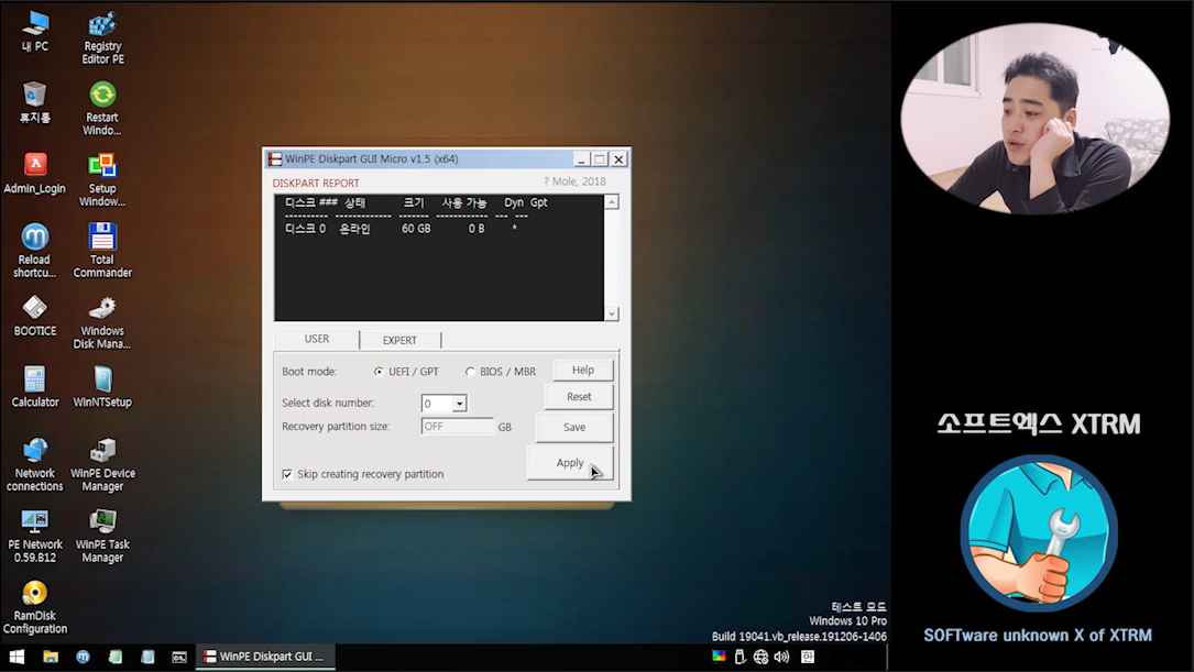 GPT 파티션 만들기 Diskpart GUI Micro (Utility in Sergei Strelec WinPE)