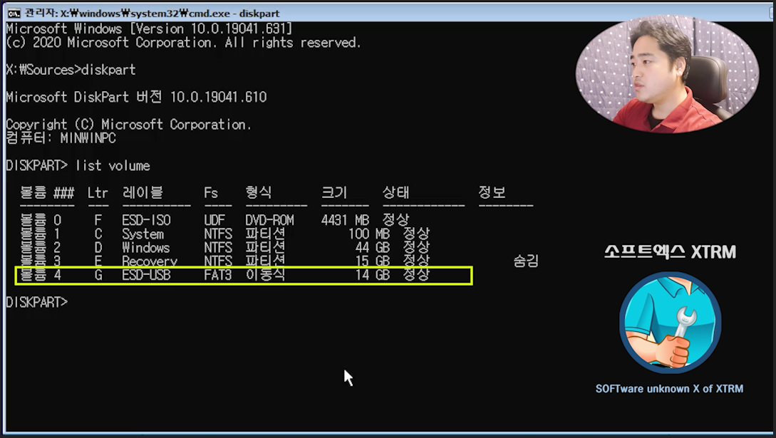 USB 메모리 부팅 후 명령 프롬포트에서 DISM 실행