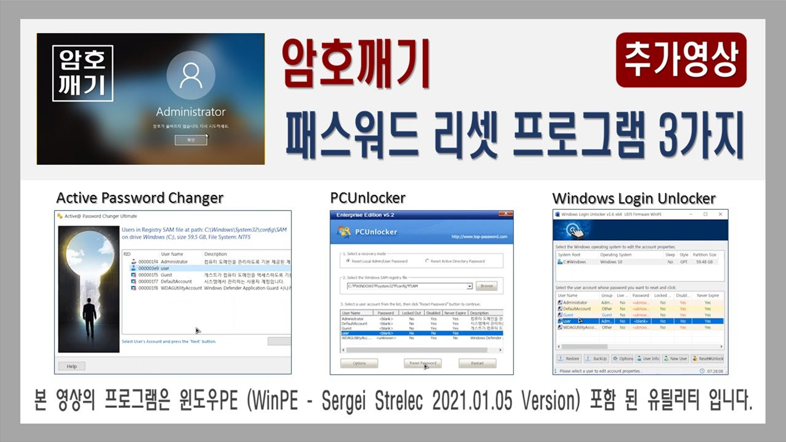 | Windows Login Unlocker, Active Password Changer, PCUnlocker (컴퓨터 암호, 윈도우 패스워드) (0) | 2021.06.19 |