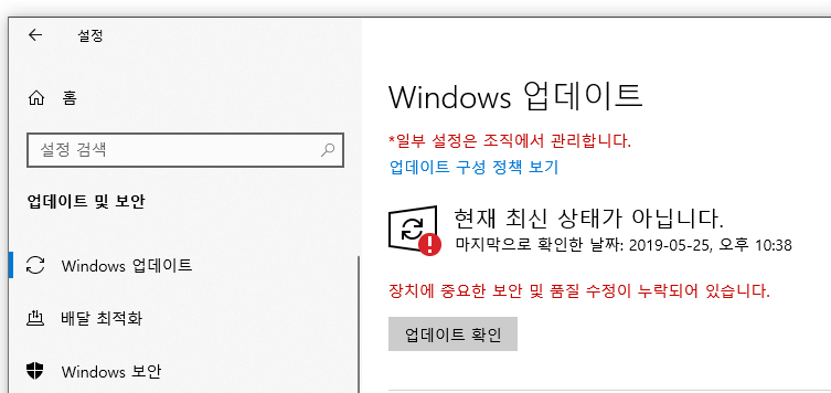 윈도우 설정 - 업데이트 및 보안 - Windows 업데이트