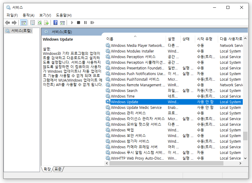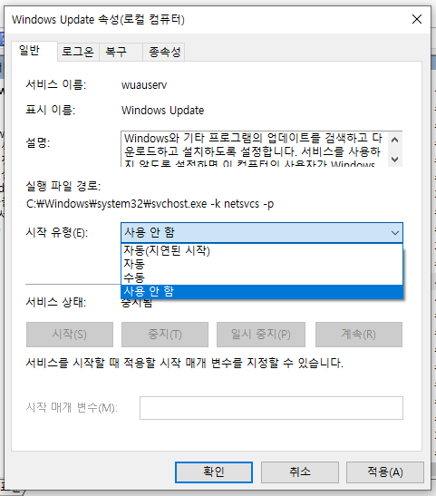 서비스 - Windows Update - 더블 클릭