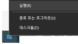 윈도우 시작버튼 - 마우스 오른쪽 버튼 - 실행