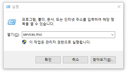 실행 명령창에 services.msc 입력 -> 확인
