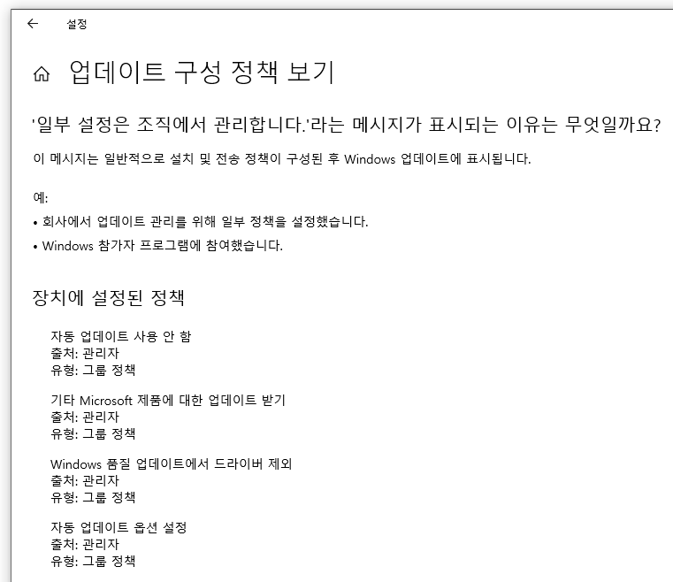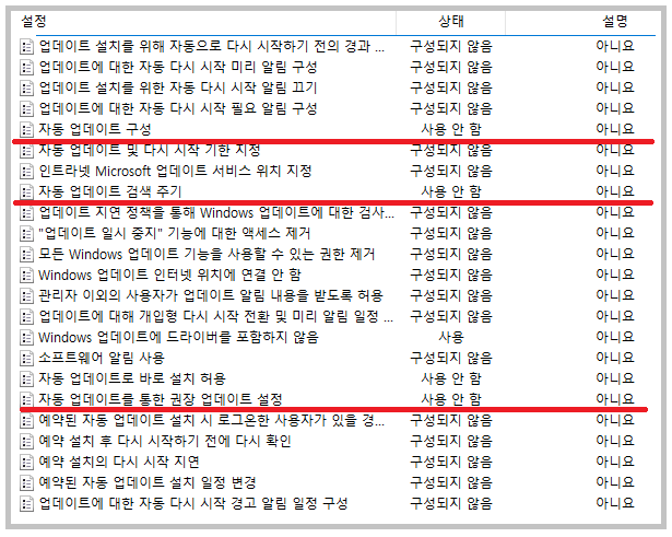 ㆍ자동 업데이트 검색 주기 - 사용 안 함
