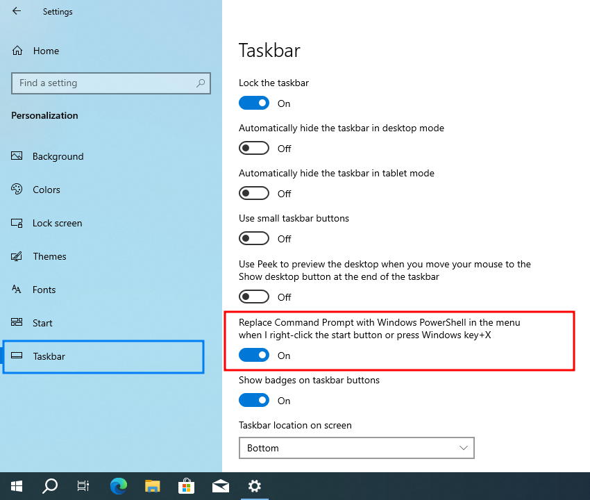 Windows 10 Replace Command Prompt with Windows PowerShell in the menu when I right-click the start button or press Windows key+X