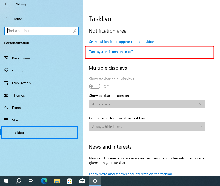 How to Enable or Disable System Icons on Taskbar in Windows 10