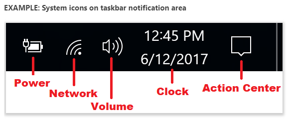 Windows 10 Hides the clock, volume, network, Power and Notification Center icons from the taskbar