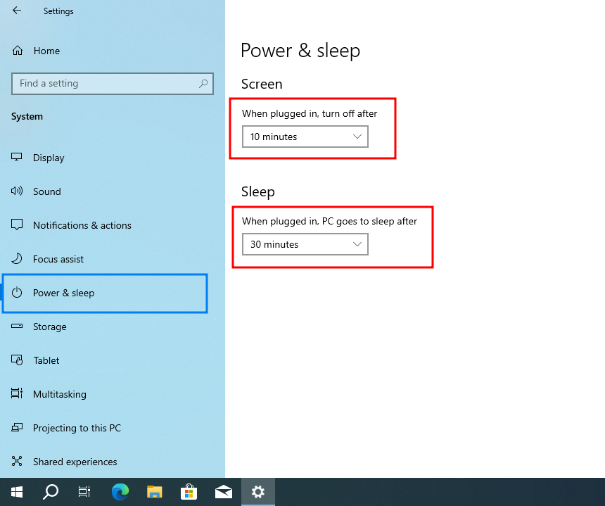 Windows 10 Power & sleep