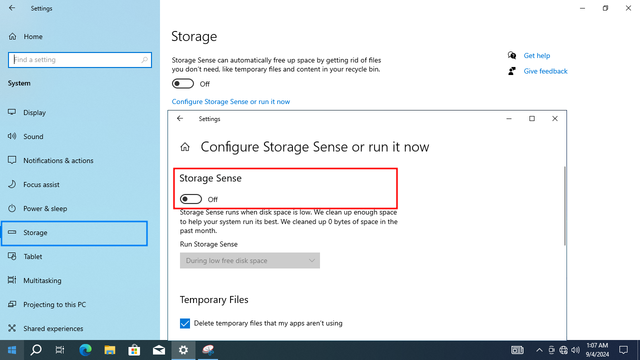 Windows 10 Storage sense