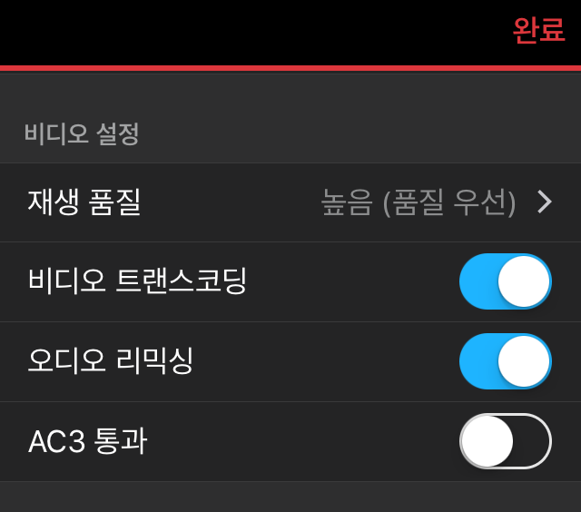● 비디오 트랜스코딩 - OFF (끔) → 동영상 원본 화질