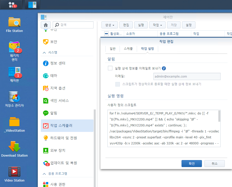 시놀로지 비디오스테이션 트랜스코딩 ffmpeg - 두번째