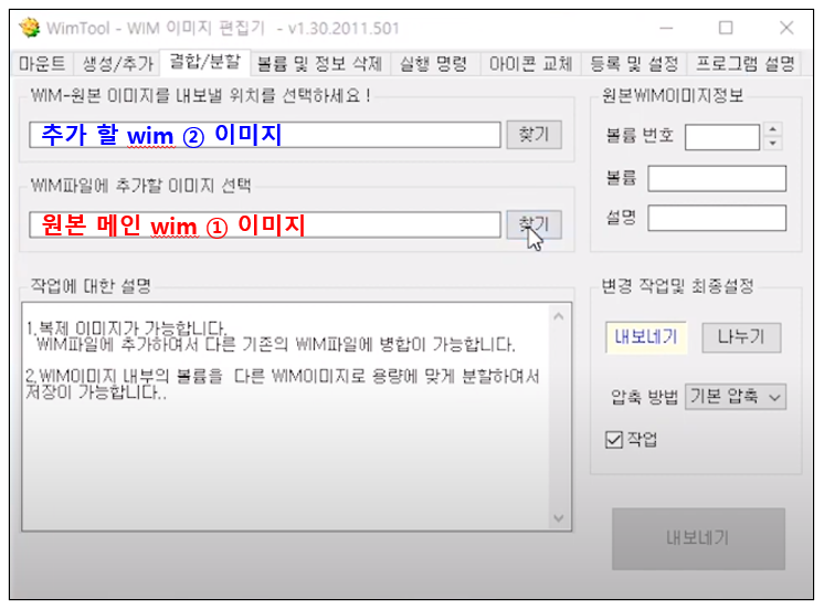 윈도우 통합 wim 이미지 만들기 WimTool 유틸리티 사용 방법