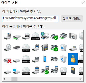 바로가기 속성 - 아이콘 변경